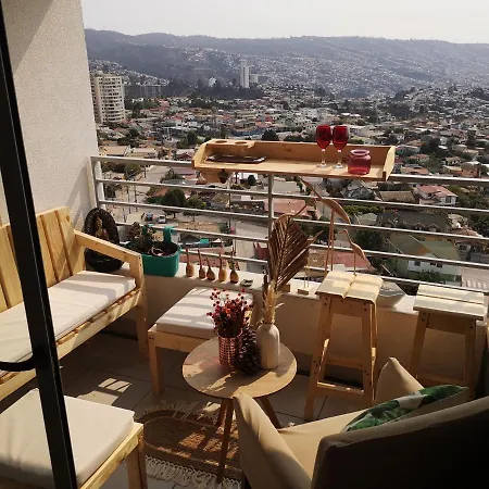 Depto Valparaiso Con Vista Al Mar Y A La Bahia De Valparaiso Vina del Mar apartment is located around a 25-minute walk from the Ascensor Baron and 3.1 km from the Caleta Abarca.
